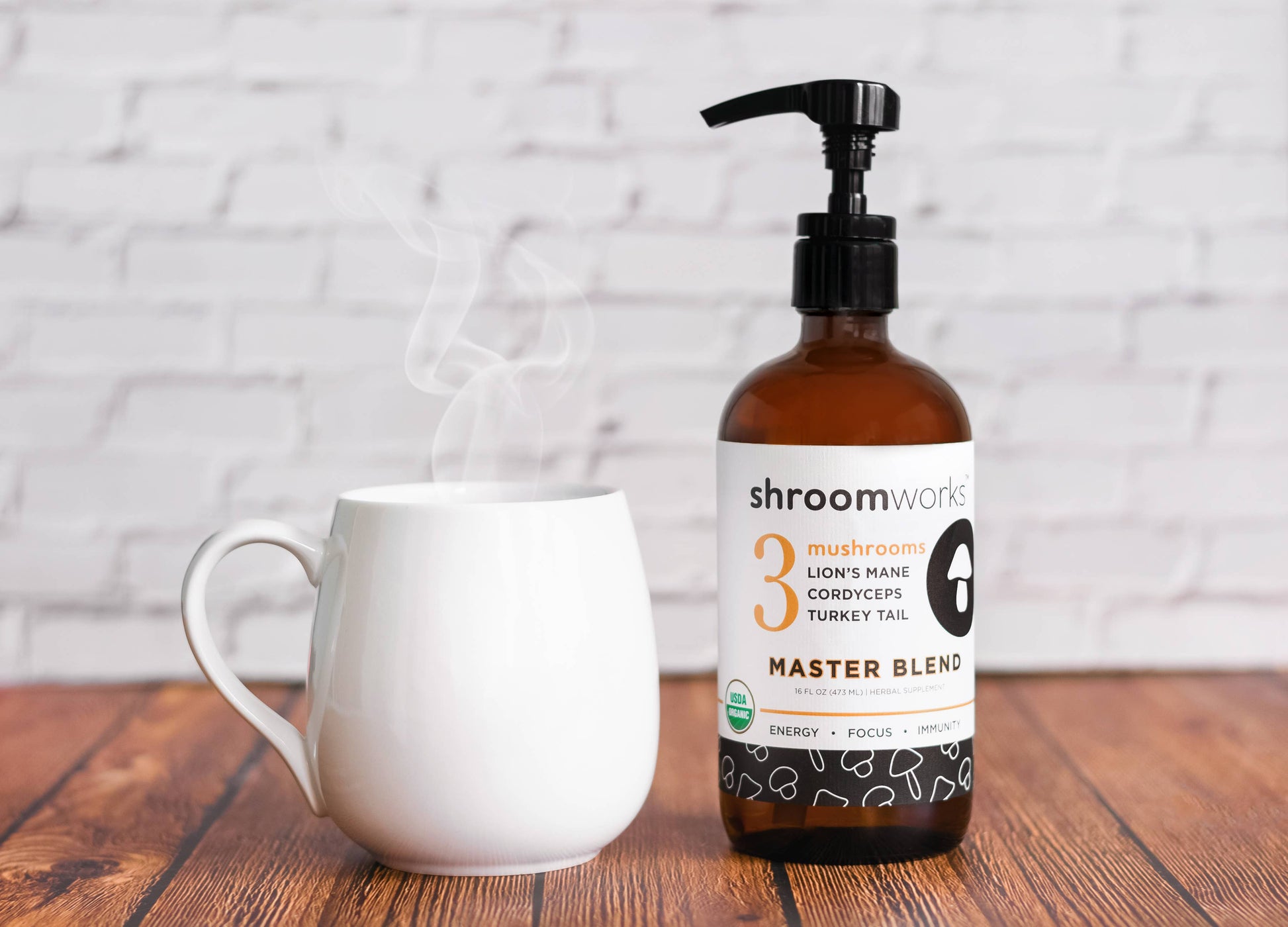 Shroomworks Mushroom Master Blend features a potent combination of"three adaptogenic mushrooms: lion’s mane, cordyceps, and turkey tail" designed to support natural energy, mental clarity, and immune health.